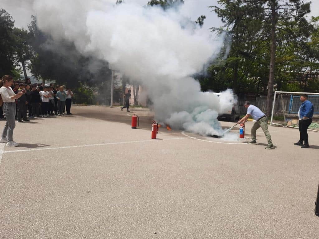 Okulumuzda yapılan yangın tatbikatında tüm öğretmen, öğrenci ve personelimizi 51 saniyede tahliye etmeyi başardık. Yangın anında yapılması gerekenlerin önemi anlatarak öğrencilerimizi bilinçlendirdik.